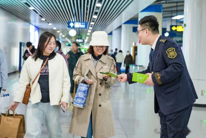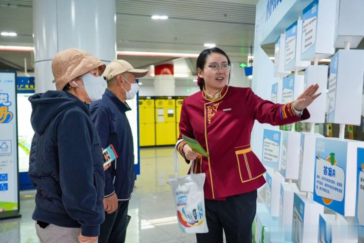 莫得喧嚣的庆典,只消诚实的互动;不惊扰每一位急遽赶路的乘客,只为将一颗绿色的种子,轻轻放入路过此地的东说念主们心中。 地铁站里的“绿色课堂” 活动今日,新华广场站内一处用心打法的区域超越引东说念主细密:整皆摆设的宣传展板,传递着垃圾分类的实用学问;志愿者们手抓宣传折页,含笑着向过往市民递上这份“绿色指南”。