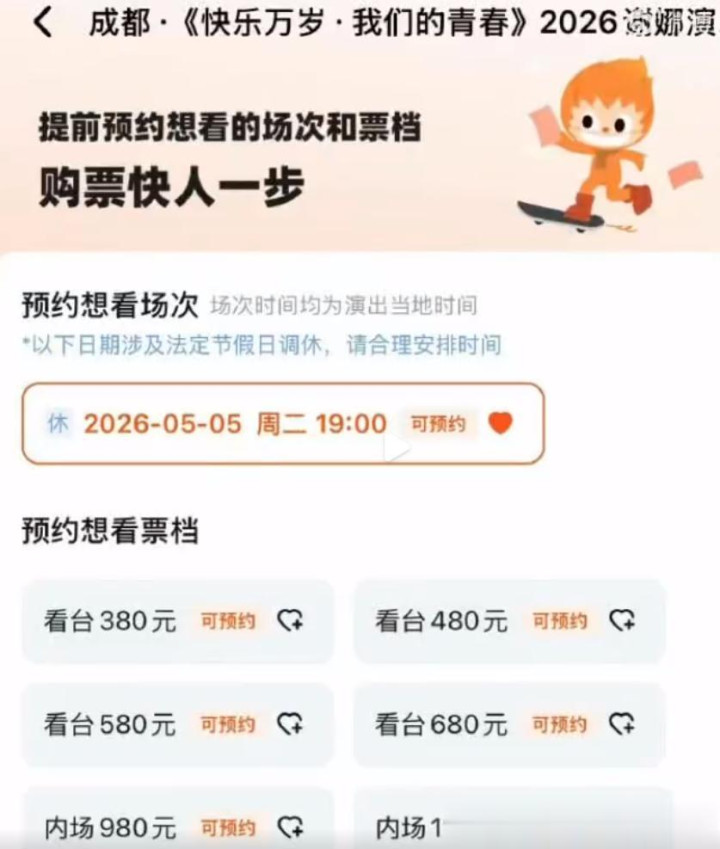 而这一次,成皆《欣忭万岁之咱们的芳华》2026年谢娜演唱会的门票价钱也出炉了。从价钱上来看,从382元到1180元不等,真钱投注app平台分红了6个档位。况且,最高票价是内场的1180元。濒临这么的票价,不少网友网罗大V直呼“看台票价380,内场只消1180”。况且,谢娜官宣演唱会之后,念念看东说念主数一经冲突了2万东说念主。