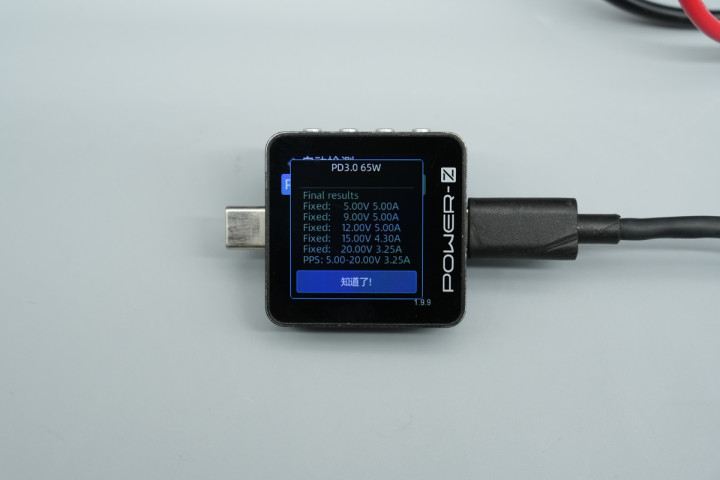 PDO报文显现USB-C口还具备5V5A、9V5A、12V5A、15V4.3A、20V3.25A五组固定电压档位,以及5-20V3.25A一组PPS电压档位。