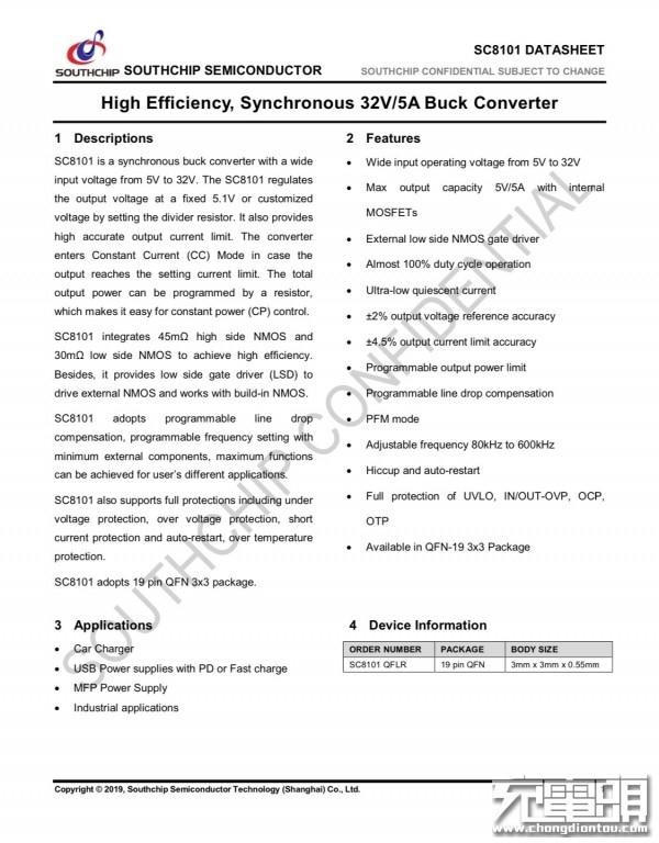 同步降压转换器来自南芯科技,型号SC8101,是一颗撑握5V到32V宽电压范围输入,输出可达5V/5A的高效果同步降压DC-DC转换器,输出电压可调。同期,它还提供高精度的输出电流功令,当输出达到设定电流极限时,参预恒流风景。芯片里面集成开关管,外围元件精简。