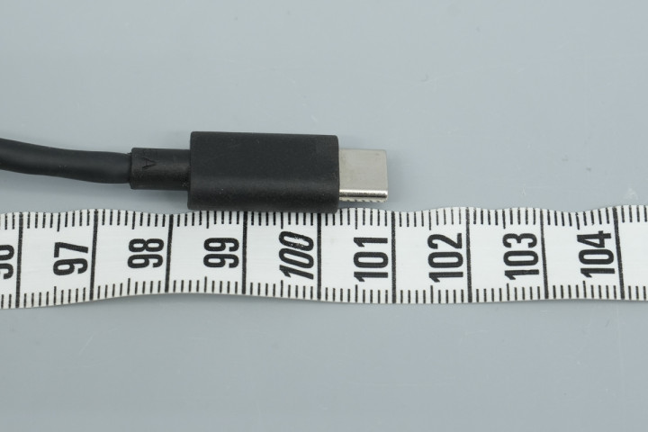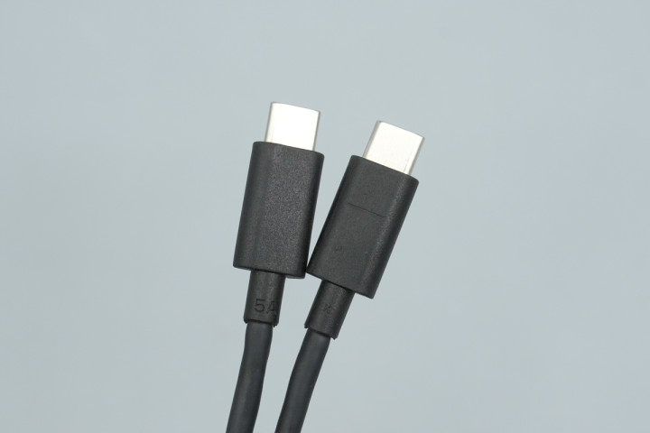 USB-C数据线为经典玄色线缠绵,端子外壳磨砂处理,抗弯折网尾上缠绵5A字样,直不雅标明线缆规格。