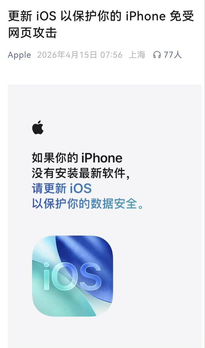 [专家网科技报说念记者张阳]4月15日,记者从苹果公司官方渠说念了解到,针对本月初工业和信息化部网罗安全胁迫和粗疏信息分享平台(NVDB)发布的苹果结尾家具存在粗疏风险的安全警报,苹果公司高度青睐,况兼飞快反应,在发现问题后进行全面访问,并第一期间针对最新操作系统版块发布软件更新,实时建造联系粗疏并阻断报复链,投注平台请示巨大用户实时进行系统更新。