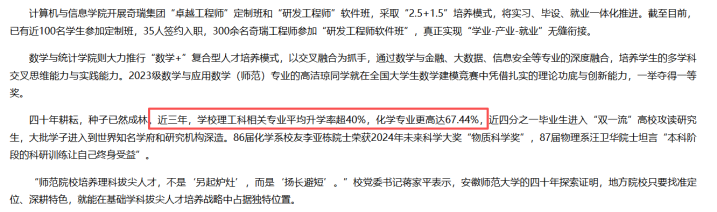不外从另外一个角度来说,安师大在安徽省属高校内部基础如实是最为深厚的,建校王人快有百年了,培养出了5位两院院士、53位杰青、36位长江学者,ESI寰球前1%的学科有6个,理工科平均升学率进取40%,化学专科升学率高达67.44%, 这些数字王人评释学校的东说念主才培养质料是达标的,缺的不是根基,而是缺那么一股梗阻瓶颈的干劲。 王峰能不行在安师大作念出一番收货,大要就要看三件事了,省里给的资源歪斜进程、新工科产学研落地的朝夕、还有上风文科能不行在大恶果上已毕质的梗阻,这三者一个王人不行少。