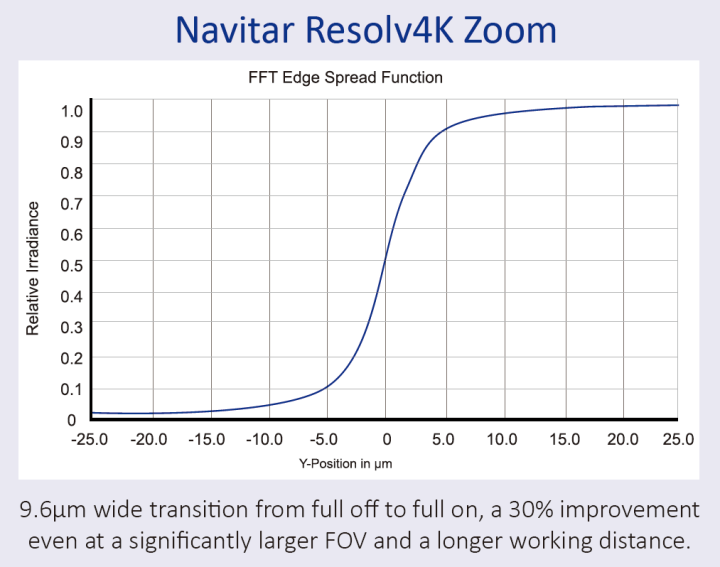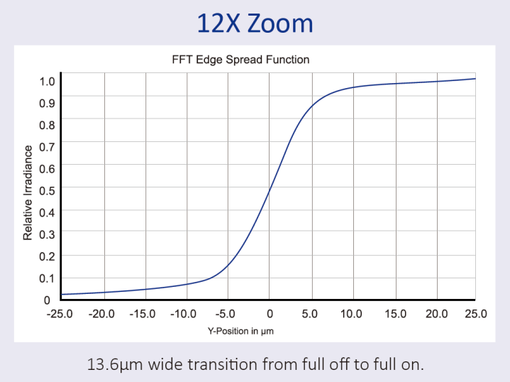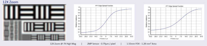 02.边际扩散函数(ESF)优化:边际与中心雷同猛烈 在光学检测中,镜头对丧祭边际的反应速率(即边际扩散函数 ESF)是揣测系统性能的中枢成见。频繁,传感器上 10%-90% 的灰度值对应丧祭所有过渡,过渡带越窄,边际越猛烈。 RESOLV4K 在这方面进展号称格外: • 在 12 倍变焦下,丧祭边际过渡宽度仅为13.6μm。 • 更令东说念主咋舌的是,在更大视场与更长责任距离的极限挑战下,其边际过渡宽度可压缩至9.6μm,性能逆势晋升30%! 成绩于极高的数值孔径(NA)与出色的像差更正才调,RESOLV4K在传感器边际仍是能保捏极其踏实的性能。您不错在视场的苟且位置解放栽植多个感意思意思区域(ROI),真钱投注边际检测软件大致显着、精确地感知每一个像素的细节各异。
