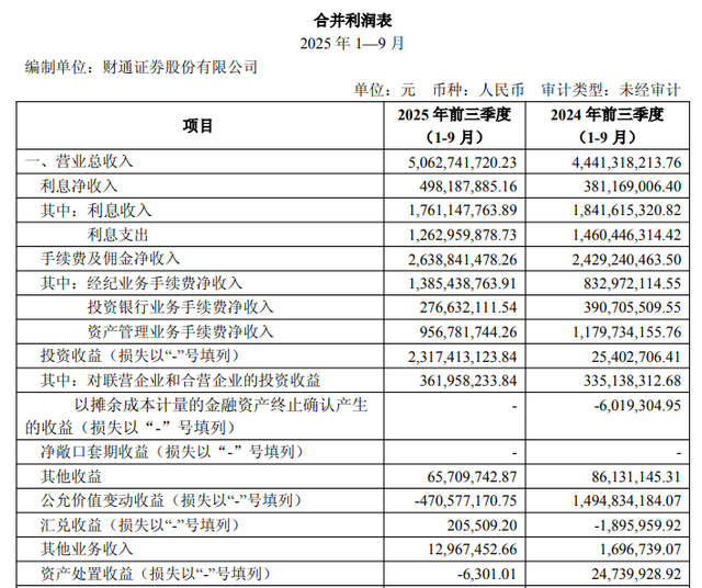 图源:腾讯自选股APP 功绩方面,财通证券呈现出“南北极分化”的态势。2025年前三季度,公司交出了一份亮眼的收货单,总资产1484亿元,同比增长4.65%;竣事买卖收入50.63亿元,同比上升13.99%;归母净利润20.37亿元,同比暴涨38.42%。