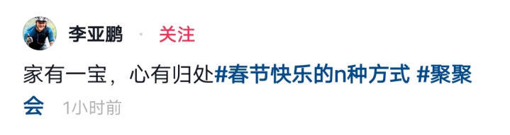 又是一年春节,费事在外的东说念主也齐回故我过年了,像李亚鹏这样一年360天齐在外面奔劳动的东说念主也齐回家了。2月15日,李亚鹏晒出回家视频,配文“家有一宝,心有归处”。