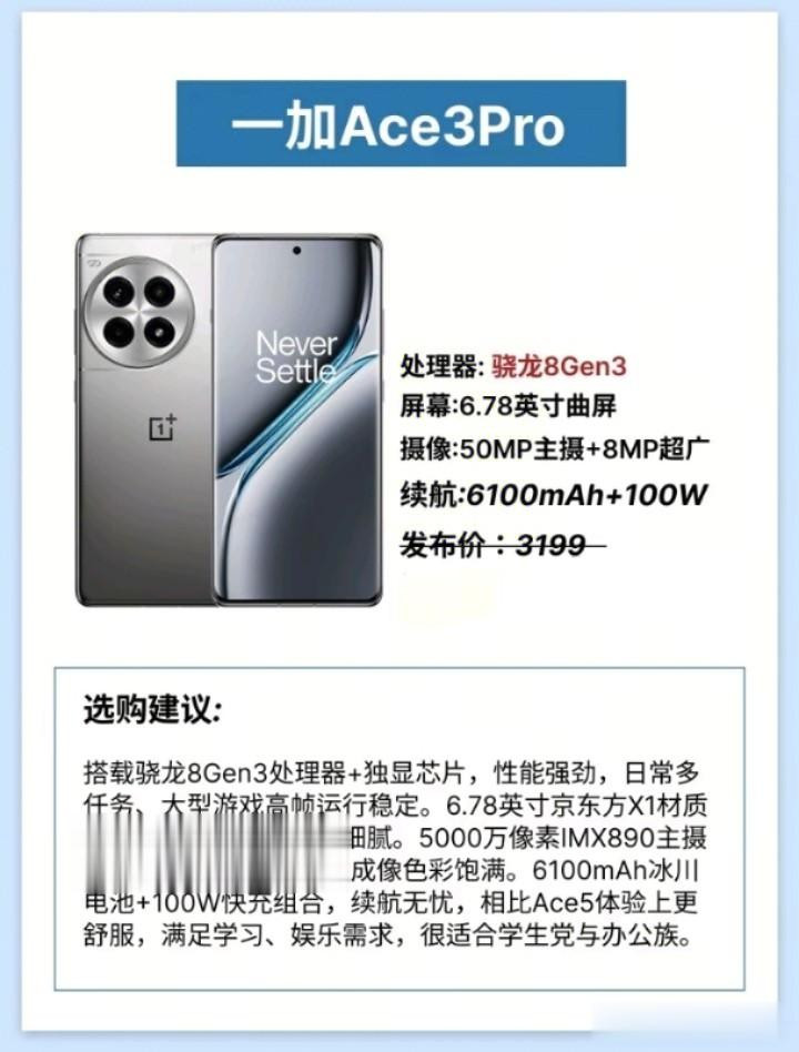 一加Ace3Pro在性能与续航上更进一步,搭载骁龙8 Gen3处理器,相助独显芯片,无论是平常多任务处理依然大型游戏高帧启动,齐能保抓踏实携带。6.78英寸京东方X1材质1.5K曲面屏,兼顾了护眼与良好浮现。5000万像素IMX890主摄赈济OIS光学防抖,日间成像色调弥漫,开云官方app夜景发扬相通出色。6100mAh冰川电板与100W快充的组合,让续航体验愈加无忧。比较Ace5,这款机型在空洞体验上更为满足,合乎学生党与办公族。