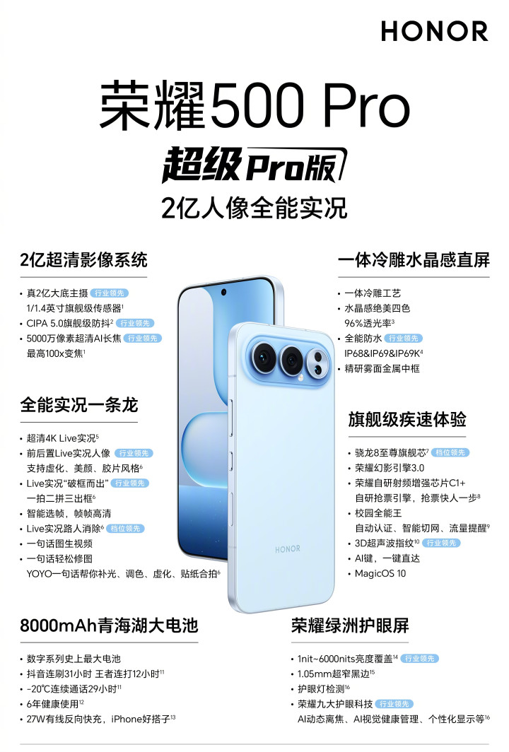 名顺次六的是荣耀500 Pro,12GB+256GB版得手价2881元,16GB+512GB版得手价3678元,这么的性价比如故有点惊喜的。该机搭载骁龙8Elite旗舰芯片,收受6.55英寸旗舰小直屏和超声波指纹识别,续航组合是8000mAh+80W+50W双重组合,机身仅有7.75毫米和201克。后置2亿像素超清主摄和5000万长焦镜头,支柱满级防水和AI实体键,合适可爱轻浮机身和长续航的小屏旗舰用户。