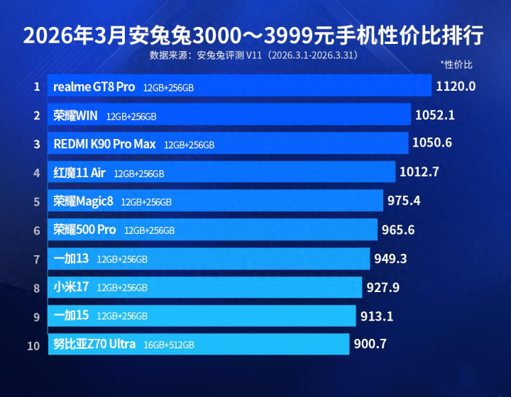 今天不竭共享安兔兔3月份性价比榜单,此次共享的价位段是3000-3999元,其中小米17仅名顺次八,名顺次一的真我GT8 Pro属于猜测之中。因为部分机型的价钱转机,是以这个性价比榜单仅供参考,不外亓纪会附上每款机型的优裂缝和及时价钱,但愿对人人的新机选购有所匡助。