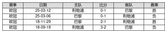 巴黎 VS 利物浦两队近10年的交战次数为4场,巴黎2胜0平2负,赢球概率为50.0%,平局概率为0.0%,输球概率为50.0%。