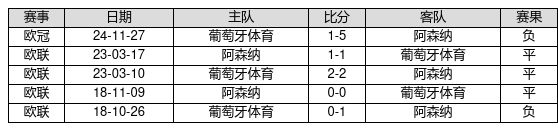 葡萄牙体育 VS 阿森纳两队近10年的交战次数为5场,葡萄牙体育0胜3平2负,赢球概率为0.0%,平局概率为60.0%,输球概率为40.0%。