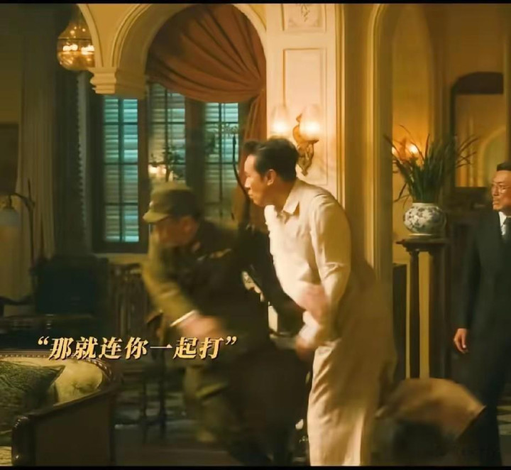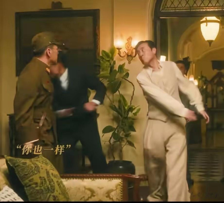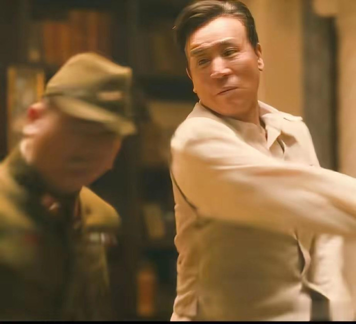 濒临对方的紧追不舍,他先是笑着周旋,成见里却藏着压不住的冷意,几番谢却被拒后,他深恶痛疾,抬手三记响亮的耳光凯旋将对方扇倒在地,脸上似笑非笑的情态里,糅合着狠戾、嘲讽与毫不谢却的民族骨气,莫得一句歇斯底里的台词,却让不雅众看得脊背发凉、意气上涨。