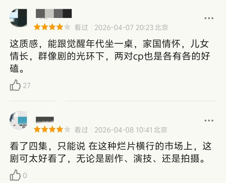 其实这些年,不雅众早就被得过且过的年代剧伤透了心。 要么是流量明星面瘫脸演豪杰,全程一个色调演完一部剧。 要么是披着抗战的外套谈恋爱,把炊火岁月里的信守,拍成了狗血偶像剧。 要么是剧情破绽百出,逻辑硬伤多到离谱,不雅众看一眼就想弃剧。